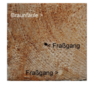 Die Schädigung durch pflanzliche und tierische Holzschädlinge sind vor Ort festzustellen und in einer Bilddokumentation und Schadenskartierung eingehend zu erläutern.